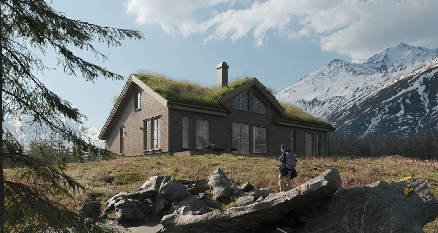 En sjenerøs og innholdsrik hytte hvor naturen er satt i høysetet. Utsikten gjøres tilgjengelig allerede fra den åpne entréen og gjennom de store vinduene som preger hele hyttas langside. Godværsdager tilbringes gjerne utendørs i solveggen med familie og venner.