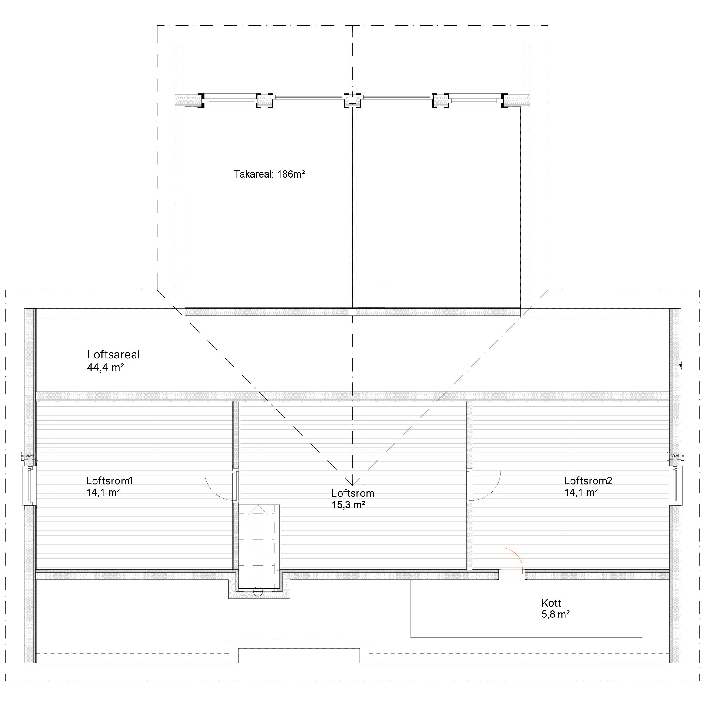 *) Soverom og stue på hems har lavere takhøyde, og inngår ikke i BRA.