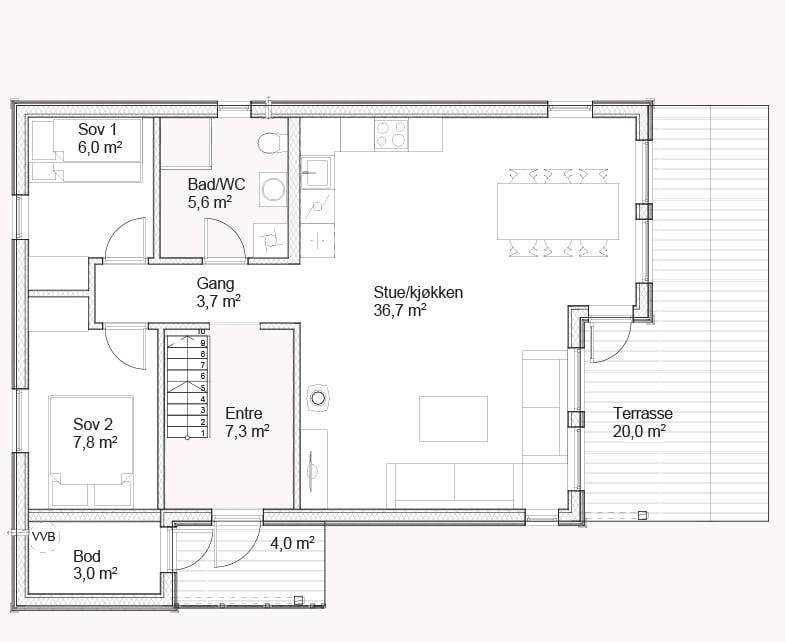 Praktisk, romslig og tilrettelagt for flere generasjoner. Hytta har en funksjonell planløsning og et luftig hemsareal med god takhøyde.
