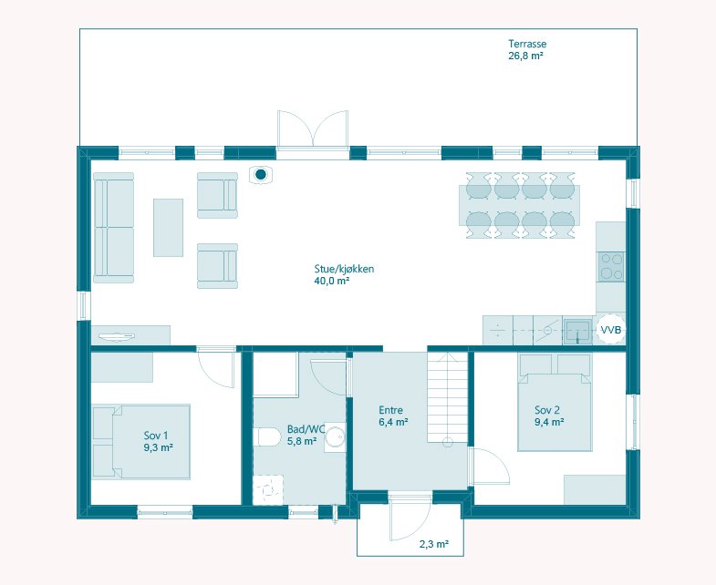 Innvendig og utvendig overflatebehandling, er ikke inkludert i ovennevnte, da dette er noe mange velger å utføre selv.